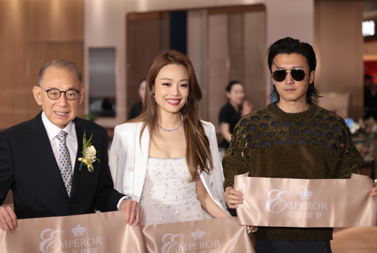 杨受成携谢霆锋、容祖儿出席英皇珠宝新店开业典礼。图片来源:视觉中国