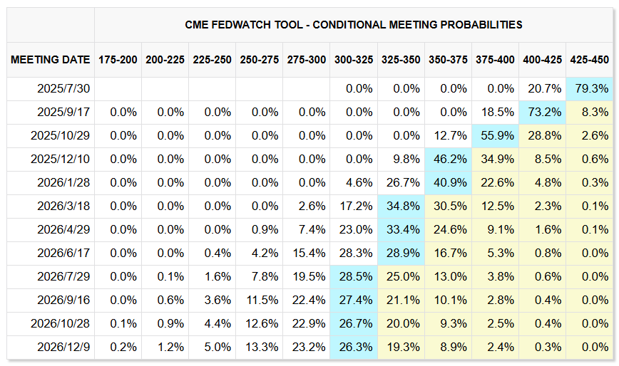 两位由特朗普任命的美联储理事沃勒和鲍曼表示,如果通胀持续低迷,他们可能会在7月29日至30日的下次政策会议上支持降息。美国劳工统计局将于7月15日公布6月份的消费者价格数据。据期货市场预测,投资者目前认为美联储的下一次降息将在9月进行。